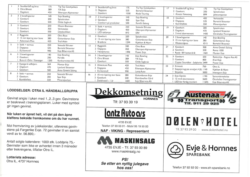 1. premie - Skipakke fra Intersport Evje Evje, verdi kr 3000,-,-